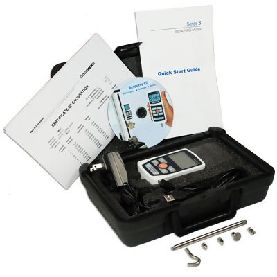 The Mark-10 Series 3 Digital Force Gauge are designed for measuring tension and compression (push & pull) force testing in numerous applications from 0.12 lbF to 500 lbF (0.5 N to 2500 N). The gauges feature a sampling rate of 2,000 Hz, producing accurate results under a wide range of test conditions. The Mark-10 Series 3 backlit graphic LCD displays large characters, and a menu is available to access the gauges features and configurable parameters. USB output (non-streaming) is provided for data collection purposes.